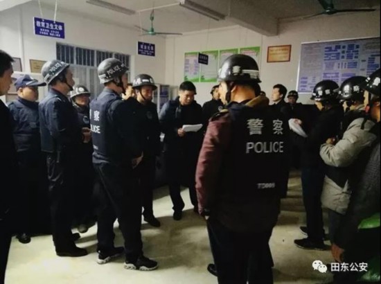 去年11月份,该局禁毒大队和那拔派出所共同摸排研判,掌握了以韦某恒、韦某谋、韦某录为首的贩毒团伙经常在田东县城及那拔镇、义圩镇等地贩卖毒品的线索。副县长、公安局长杨昌锋和政委黄龙产听取案情汇报后,指令由禁毒大队继续牵头开展先期调查取证,待机收网。经过近三个月的工作,该贩毒团伙的成员结构、活动情况和犯罪事实基本查清,2019年2月13日凌晨,根据局主要领导的指示,分管禁毒工作的局领导亲自率队,从禁毒、网安、治安大队及平马、合恒、祥周、林逢、思林、那拔、义圩、朔良、印茶派出所调集精干警力40人,多个行动小组兵分多路同时开展统一收网行动。