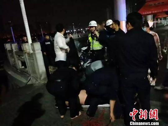 图为民警纵身跳河勇救轻生女 颜新阳 摄