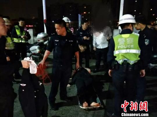 图为河源警方将轻生女子送上救护车颜新阳摄
