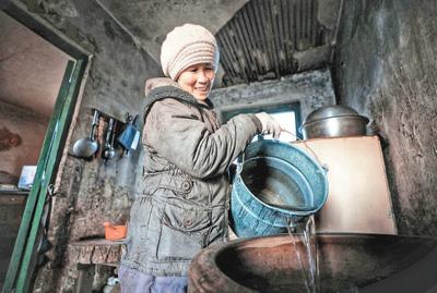 原火炬沟站附近居民家里有了水吃。王 强摄(人民视觉)