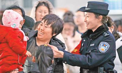 民警在运城北站帮助旅客。郭 智摄(人民视觉)