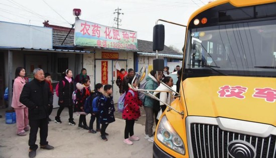 “今天是新学期第一天,两件事情请大家注意一下。第一,请照管员与首次乘车的学生家长对接好,什么时间什么地点接送,要讲清楚,免得他们担心;第二,新年了,给家长们拜个年。最后,注意安全!”车队长王正标说完,驾驶员和照管员登车,校车依次驶出校园,开往各接送点。