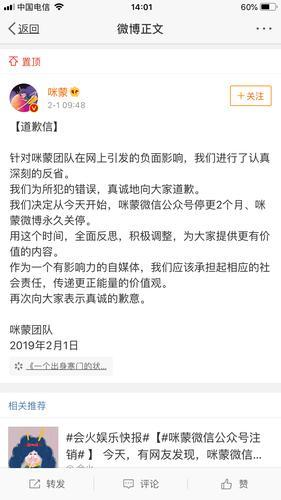 其今年2月1日的微博《道歉信》信息量大。《道歉信》称微信停更和微博关停后,“将用这个时间,全面反思,积极调整,为大家提供更有价值的内容。”