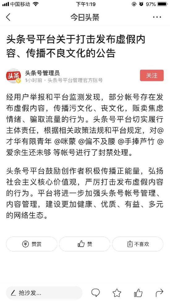 全网封杀? 咪蒙微信公号已注销 多家平台声明关停
