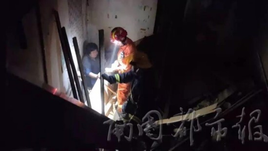 据介绍,21日凌晨3时1分接警后,海口市消防救援支队指挥中心立即调派琼山区消防大队国兴中队及琼山区文庄小型消防站共计2部消防车11名指战员赶赴现场救援。消防救援人员到达事故现场后,经现场初步侦察和群众反馈了解到,倒塌房屋为一层砖瓦木结构的尖顶瓦房,屋顶发生了坍塌,但瓦房墙体未倒,1名老人被困屋内。碎砖及断裂的木头、瓦片堆在门口,木门也被屋内杂物卡住,从外面无法打开木门,如果强行破拆此门进入,可能会造成房屋二次坍塌。