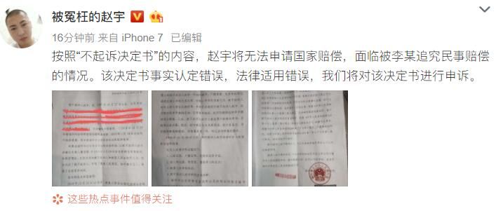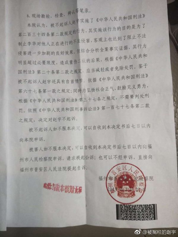 连日来,在福州工作的黑龙江小伙赵宇因见义勇为反被刑拘14天事件备受关注。2月21日凌晨,福州市公安局发布官方消息称,鼓励见义勇为,检察机关对赵宇做出不起诉决定。下午18点55份,当事人赵宇发微博称:按照“不起诉决定书”的内容,赵宇将无法申请国家赔偿,面临被李某追究民事赔偿的情况。该决定书事实认定错误,法律适用错误,我们将对该决定书进行申诉。