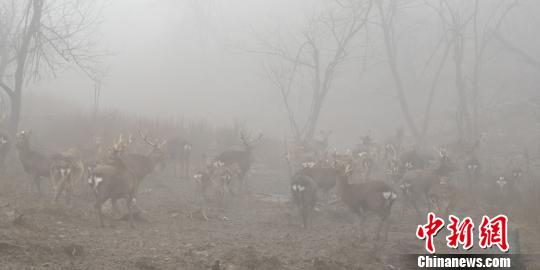 中新网杭州2月21日电(张斌)世界濒危物种之一的华南梅花鹿近日现身杭州临安清凉峰国家级自然保护区。据悉,二十年来,该区域的野生华南梅花鹿种群数量已由20世纪90年代初最少时的80余头增加到目前的近300头。