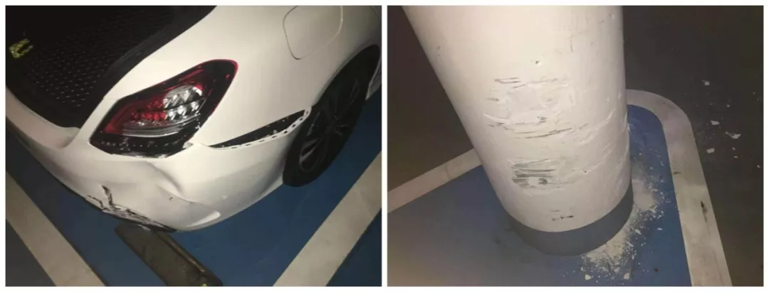 过了一会儿,孙女士眼睛一亮,终于发现了自己的停车位。孙女士一脚油门下去,右车尾“咔”地一声撞上了停车场的柱子。孙女士心里咯噔一下,赶紧下车查看情况并打了报警电话。▼