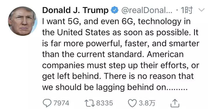 特朗普:要尽快发展5G甚至6G 通过竞争获胜而非封杀