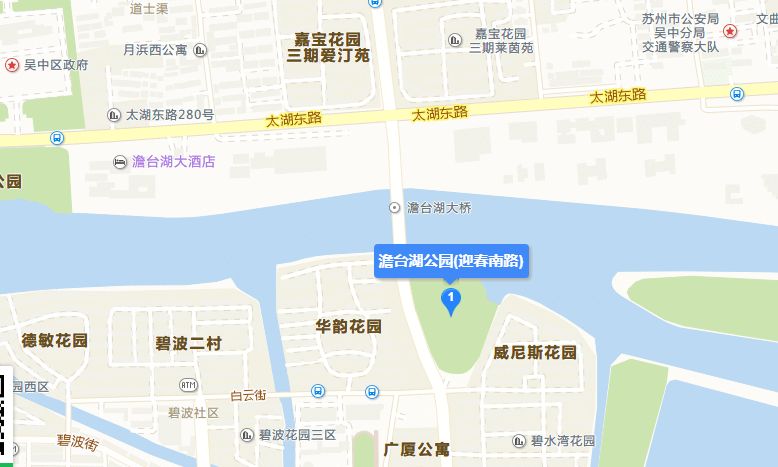 澹台湖公园,位于吴中中心城区核心地带,东至吴东路、北至京杭大运河,西至夏田港、南抵石湖东路,占地面积660亩。