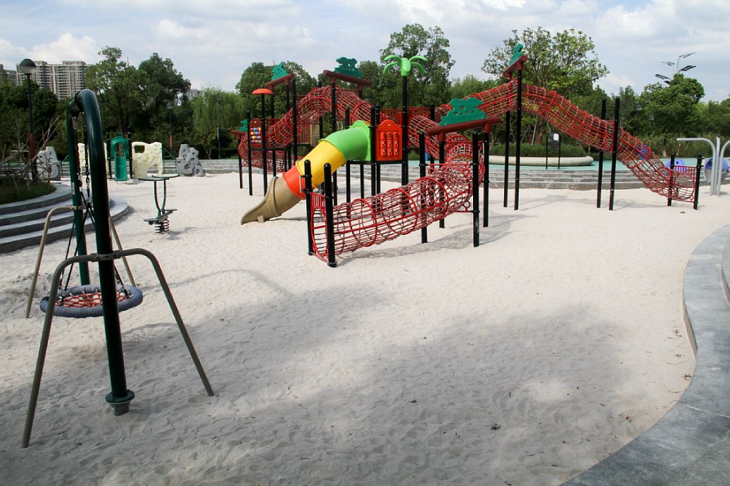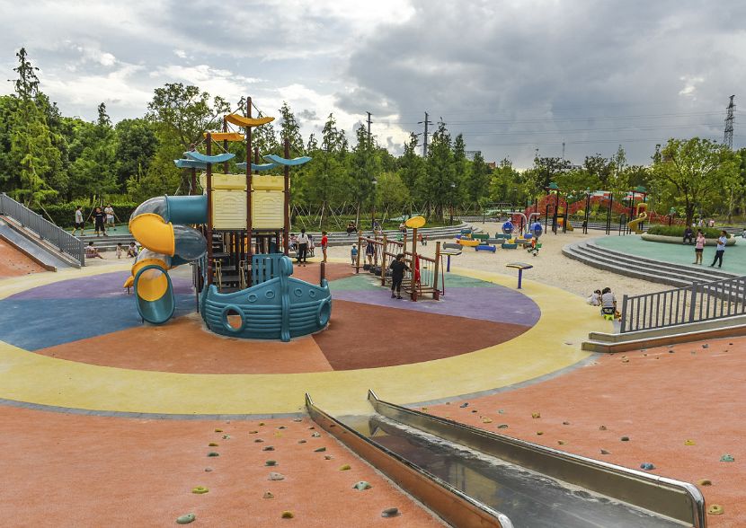 目前已建成的一期项目总面积为 44万平方米 (含水面),公园内包含一处总长约 5公里的“大运河”健身步道,2处健身广场,2处儿童游乐场以及2处安装有各类户外健身器材的市民健身场地。