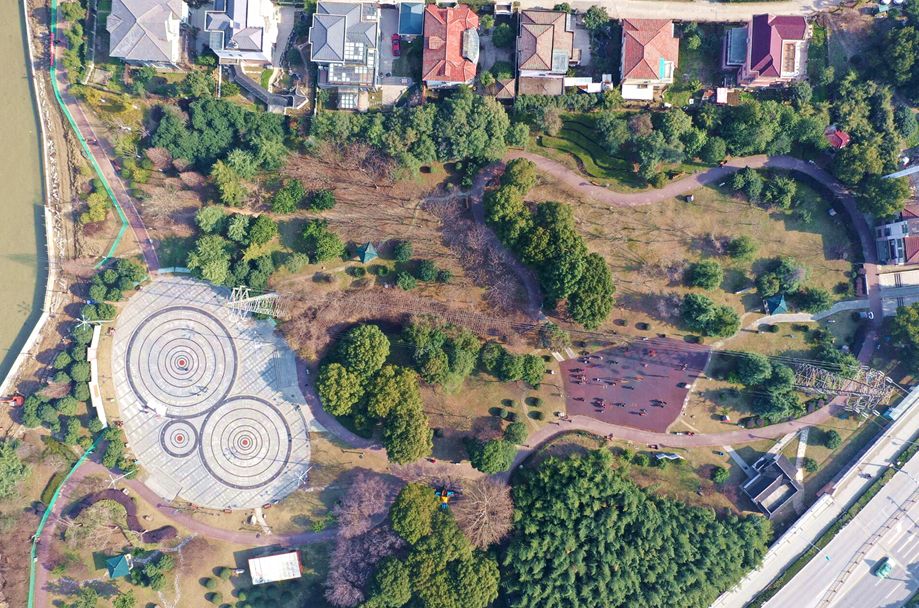 公园以“乔木为主、当地特色”为特点,适当通过组合乔灌木植被,丰富园内植物层次,形成完善的植物群落,是附近居民家门口休憩、晨练的“后花园”。