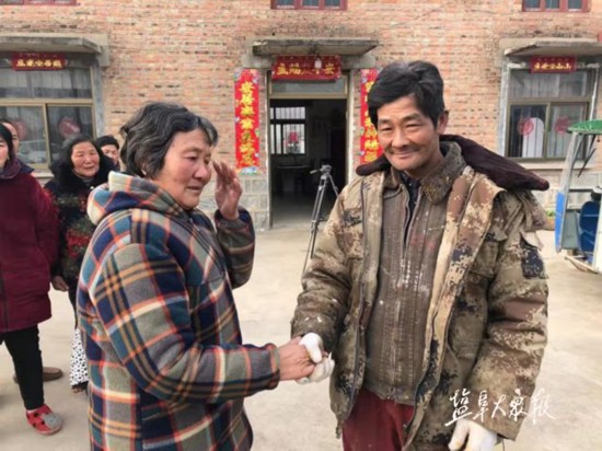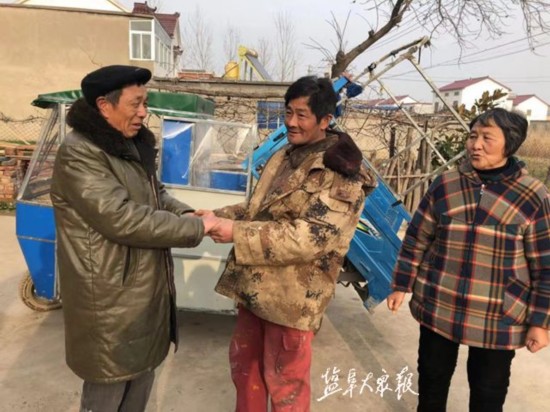 2月22日上午,响水县双港镇合蒲村2组村民王亚利来到双港振兴船业有限公司,寻找一位名叫厉青海的工人,感谢他从水中救起自己的父亲和两个孩子,并带来礼物以表示谢意。