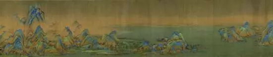 泥金画中的金色是用纯金制作而成的,金所具有的神秘光泽和华丽色相,在画面中呈现出富丽堂皇的视觉效果,是其它颜料无法替代的。金在中国画中的运用源自于佛教绘画的传入,并因佛教的兴盛而得以发展,多用于寺庙、道观中的神佛造像和壁画创作。传统绘画中金的使用始见于隋唐,在宋代趋于成熟,最广为人知的莫过于北宋王希孟的《千里江山图》。