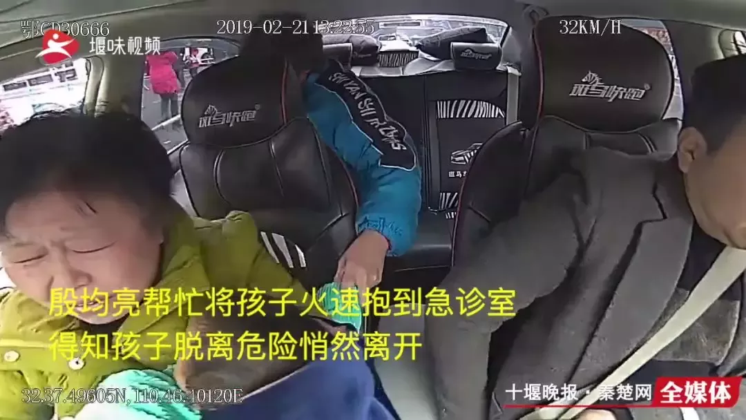 “麻烦快带我上车,我们要去医院。”老婆婆哭着,嘴里一直重复着这句话。其手中抱着的孩子则昏迷不醒,不停抽搐,并翻起了白眼,情况十分危急。殷均亮见状,连忙让两位老人上车,迅速启动车辆,朝太和医院驶去。