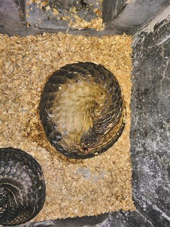 广西陆生野生动物救护中心,一只因走私被查获的穿山甲。