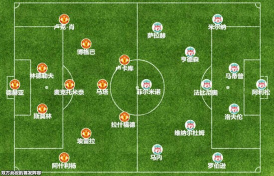 令曼联球迷感到欣慰的是,临危受命的麦克托米奈和佩雷拉很好地完成了防守和出球任务,桑切斯和卢卡库对两闸的驰援力度也很大,博格巴依然能够留在靠前的位置指挥进攻,这就是曼联在被动局面下依然创造出不少机会的原因。曼联集中力量填塞禁区,马内和萨拉赫的脚下感觉相当糟糕,利物浦很难从肋部打开缺口,米尔纳多次尝试传中也都被曼联后卫解围。红军的中场没有捕捉第二落点实施远射的意识和能力,进攻显得缺乏层次和变化,一旦无法抢到第一落点,红魔的反击往往就会迅速对阿利松把守的球门构成威胁。