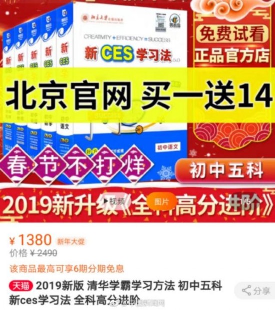 日前,教育部网站“留言答复”栏目中有人提问“广告宣传称新ces学习法是由北京大学音像出版社正版出售,由中国教育部权威认证,指定销售官方网站正版保证。”25日,教育部回应:1、北京大学音像出版社未出版过“清华学霸学习法”制品;2、《新CES学习法》由北京大学音像出版社出版,产品包装和宣传中未使用“清华学霸”“教育部权威认证”字样;3、北京大学音像出版社未指定“销售官方网站”。
