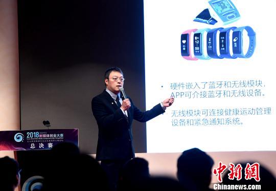2月26日,由台湾创业团队开发的新应用《居家健康管理与照护系统》项目相关负责人在现场进行路演。当日,2018海峡两岸新媒体创业大赛总决赛在福建平潭综合实验区举办。新内容、新营销、新应用等三大主题的11个入围项目将角逐桂冠。本次大赛受到海峡两岸新媒体业界的广泛关注和热情参与。 张斌 摄