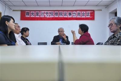 2016年5月,朝阳区霞光里,居民在居民议事厅讨论。资料图片/新京报记者 王嘉宁 摄