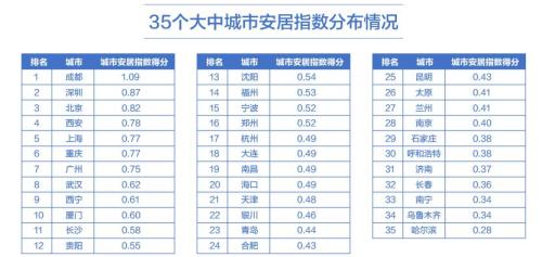 “其次是居住关注度较高,在35个大中城市的用户中,把成都作为目标城市的人较多,再加上宜居环境等得分也较高,使成都的城市安居综合指标得分第一。”崔光灿说,成都不仅拥有独特的生态环境优势,近年作为“新一线城市”,在吸引人才上力度很大,也使其成为重点关注的城市。