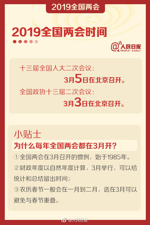 十三届全国人大二次会议和全国政协十三届二次会议,将分别于3月5日和3日开幕。这是我国政治生活中的大事,也与每个人生活息息相关。两会为啥在3月召开?为何人大代表提 “议案”,政协委员提 “提案”?2019年#全国两会#哪些话题最受关注?