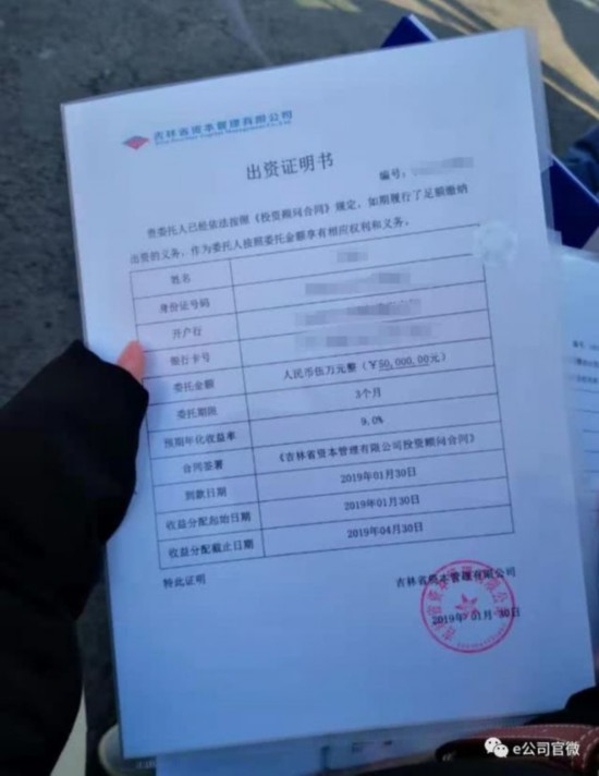 一位投资人此前在吉林文投集团购买了100万元的理财产品,原本是在今日(3月1日)到期兑付,但是令她万万没有想到的是,却迎来了吉林文投集团董事长失联、自己的本金和利息均已不能兑付的消息。“我这已经是第三次购买吉林文投集团的理财产品,前两次都是准时兑付了本金和利息。正是因为有了前两次的成功经验,所以这一次才会是投入资金最多的一次。”据这位投资人介绍,之所以会在吉林文投集团购买理财产品,是因为自己一位相交了20余年的朋友在吉林文投集团工作,这位朋友自己也是投入逾200万元购买吉林文投集团的理财产品。