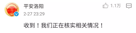 23时29分,洛阳警方表示接到报警,迅速在微博上与博主沟通,同时马上投入警力在线下查找。