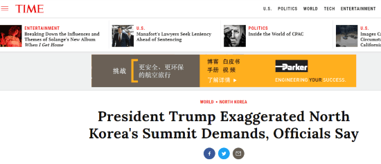 美国《时代》周刊3月1日发布题为“(美)官员称,特朗普总统夸大朝鲜在峰会上的要求”的报道。文章说,朝方在越南峰会上提出的要求是数周以来在低级别会谈上一直想要促成的。
