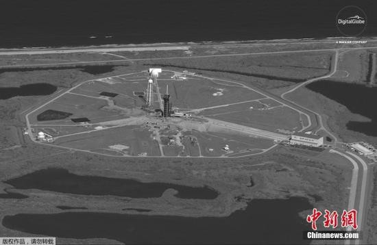 当地时间3月1日,美国佛罗里达州卡纳维拉尔角空军基地,搭载无人驾驶“载人龙飞船”的SpaceX猎鹰9号火箭伫立在发射台上。