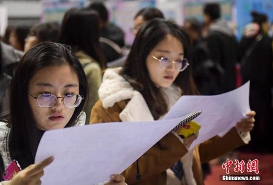 资料图:大学生浏览招聘信息。中新社记者 张勇 摄
