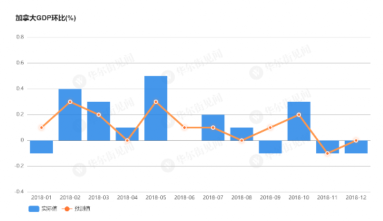 华尔街见闻消息 当地时间3月1日,加拿大再次发布了远不及预期的经济数据。该国经济增长似乎从去年第四季度开始就已经停滞不前了。数据显示,2018年第四季度加拿大GDP年化季环比增速为0.4%,远低于前值2%,并低于预期值1%,同时也是两年来的最低增速。全年GDP增长1.8%,增幅较2017年下滑40%。详情》