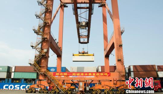 这批从越南进口的水果是重庆一家从事水果贸易的企业经防城港口岸入境的首批货物,该企业负责人邓洪九介绍,此次试水经防城港进口东南亚水果,使用海铁联运,相比其他通过汽车运输的线路节约了约一半的物流费用。货物在防城港港口码头可以直接从货轮到铁路班列“零距离”的接驳,非常便捷省时。2019年,该企业将有1万柜从泰国和越南进口的水果经防城港口岸入境。