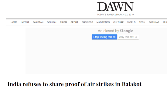 巴基斯坦《黎明报》3日报道称,巴方此前曾提出质疑称,印度在上周的空袭当中并没有任何人员伤亡,当时印度的炸弹只击中了一个荒无人烟的山坡,一些印度反对派人士也要求印度政府提供空袭的证据。