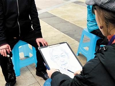 记者通过询问了解到,这名在广场免费给行人画画的女孩儿来自湖南,就读于西南大学的视觉传达设计专业。