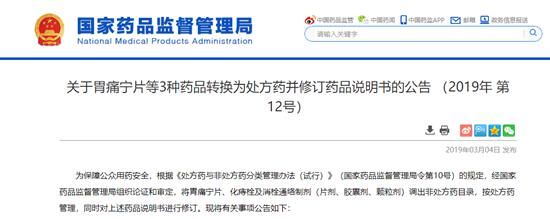 荔枝新闻讯 据国家药品监督管理局官网消息,为保障公众用药安全,根据《处方药与非处方药分类管理办法(试行)》(国家药品监督管理局令第10号)的规定,经国家药品监督管理局组织论证和审定,将胃痛宁片、化痔栓及消栓通络制剂(片剂、胶囊剂、颗粒剂)调出非处方药目录,按处方药管理,同时对上述药品说明书进行修订。现将有关事项公告如下: