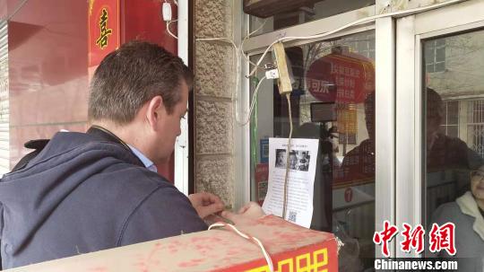 图为王龙川的养父张贴寻人启事。 张林虎 摄