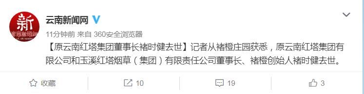 记者从褚橙庄园获悉,原云南红塔集团有限公司和玉溪红塔烟草(集团)有限责任公司董事长、褚橙创始人褚时健去世。