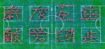300名小学生拼成“奉献、友爱、互助、进步”雷锋精神字样。顾海燕供图