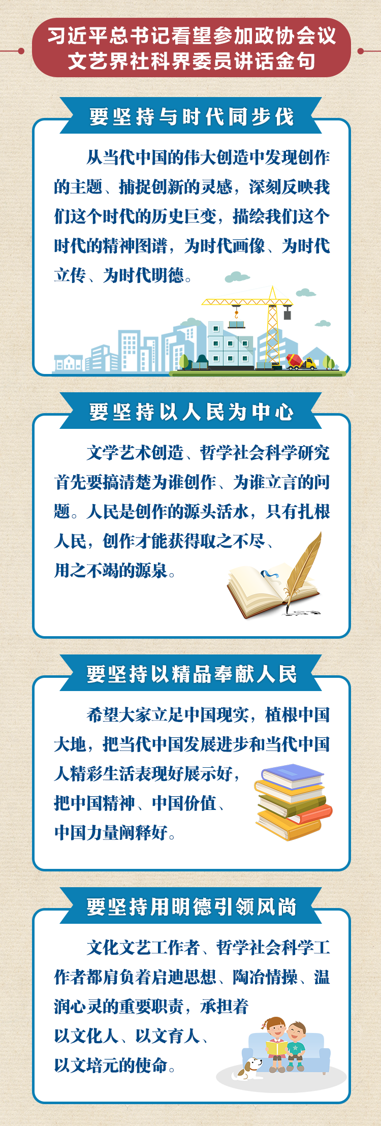 在听取大家发言后,习近平总书记发表了“金句频出”的重要讲话,对文化文艺工作、哲学社会科学工作提出了四个方面的要求——