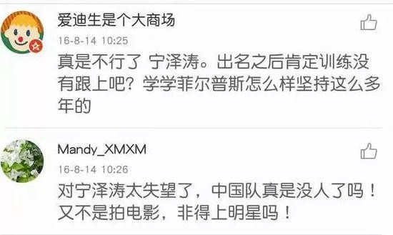 有人宠溺的同时也会有人批评。围绕着宁泽涛的争议一直没有停息,即便是表示退役之后,宁泽涛的粉丝仍旧不离不弃捍卫粉丝,与批评者继续展开唇枪舌剑。