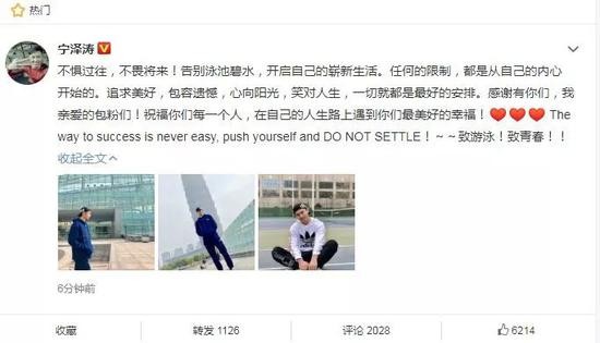 回看宁泽涛的个人微博,或许从其中也可见些许端倪。在去年12月后,他更新的内容除了与网友互动与分享“鸡汤”,已经不见任何与比赛、训练有关的内容。