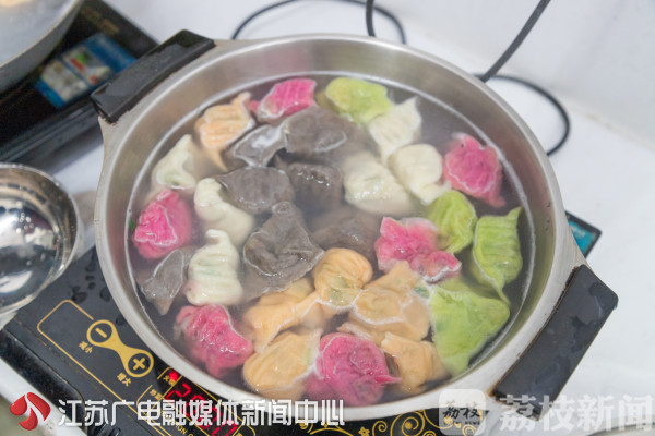 五彩饺子,顾名思义,就是五种颜色的饺子。孙阿姨包的饺子有白、绿、黑、红、黄五种颜色,分别对应了金、木、水、火、土五行。“人也有五行,我希望楼栋的孩子们吃了我做的饺子,都能健健康康、远离疾病。”孙爱华爽朗地笑着。“而且饺子的颜色都是纯天然的,像绿色就是芹菜汁,黑色是芝麻糊,红色是火龙果汁,黄色是胡萝卜汁,营养又好看,同学们肯定爱吃!”