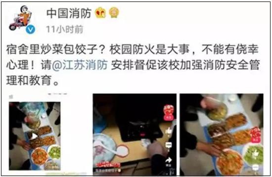 3月6日,一名网友晒出一段宿舍做饭的短视频,并定位在中国矿业大学,结果很快被中国消防网上巡查,1小时候后。。。