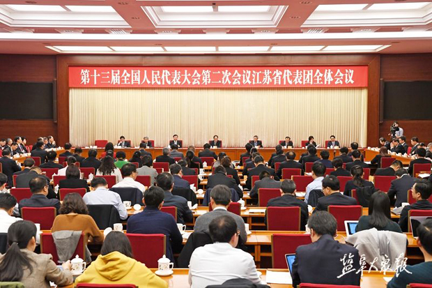 3月5日下午,十三届全国人大二次会议江苏代表团举行第二次全体会议,审议李克强总理代表国务院作的政府工作报告。全国人大代表、市委书记、市人大常委会主任戴源作审议发言。
