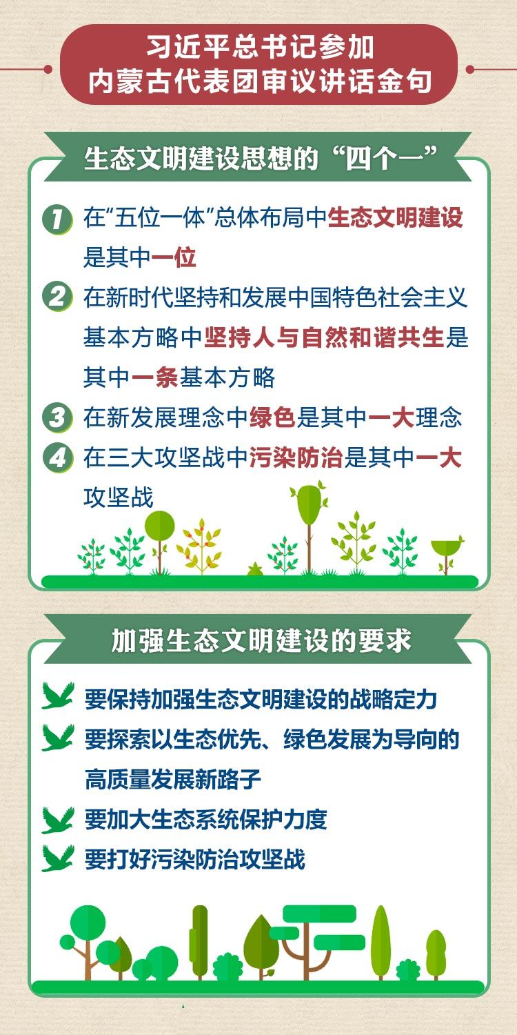 3月5日下午,中共中央总书记、国家主席、中央军委主席习近平参加了他所在的十三届全国人大二次会议内蒙古代表团审议,并发表了“金句”频出的重要讲话——