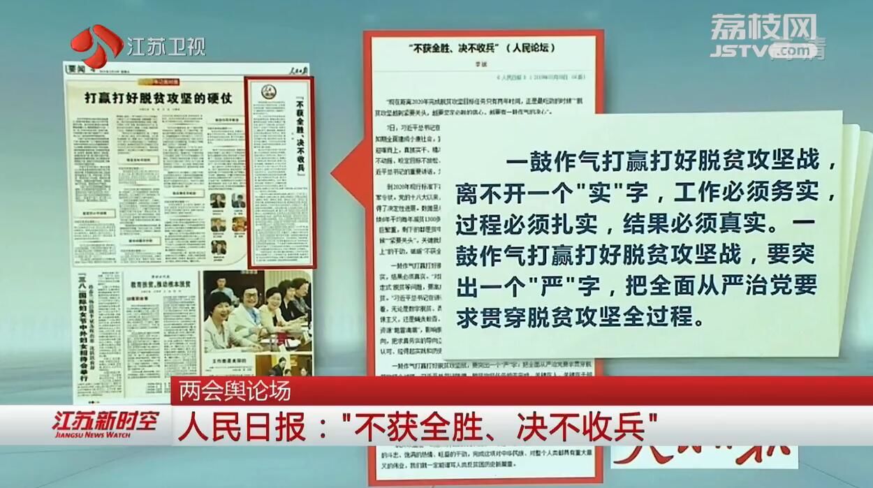 人民日报发表文章指出,一鼓作气打赢打好脱贫攻坚战,离不开一个"实"字,工作必须务实,过程必须扎实,结果必须真实。一鼓作气打赢打好脱贫攻坚战,要突出一个"严"字,把全面从严治党要求贯穿脱贫攻坚全过程。