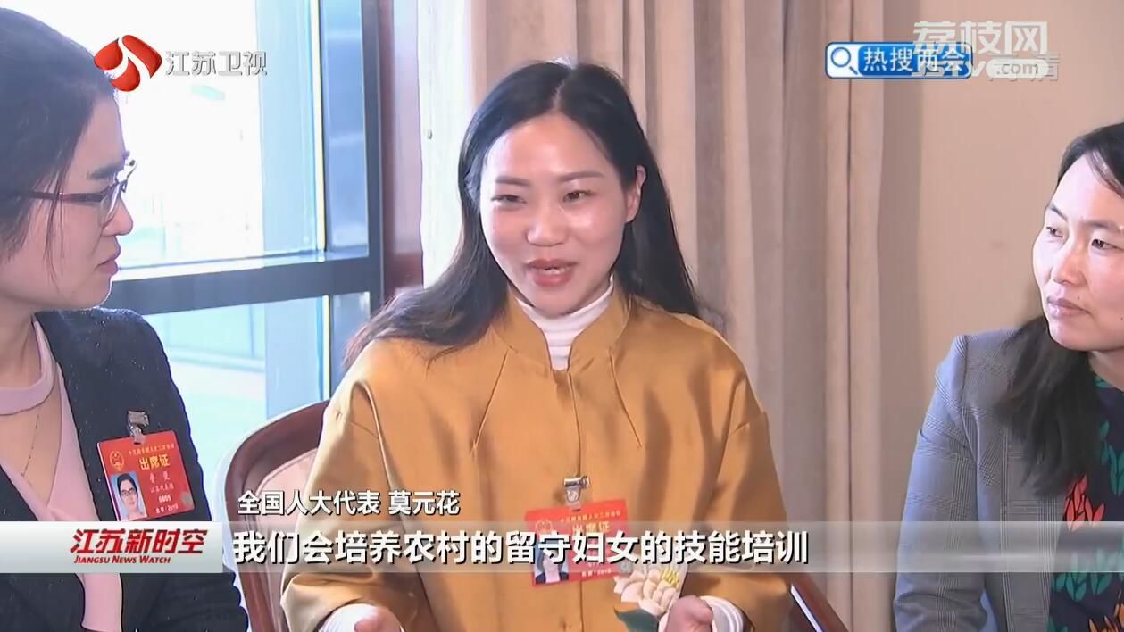 全国人大代表莫元花:“我们在省妇联的带动下,成立了一个三八红旗手工作室,通过这个平台我们会培养农村的留守妇女的技能培训,通过她们自己的双手创造自己的价值,在家里面家门口就能赚到钱。”