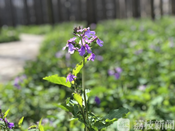 蓝紫色的花瓣、锯齿状的叶子上,托出一株株品字形的花瓣。作为南京春季最常见的野花,二月兰朴素而低调。厚重古朴的南理工校园,也因为二月兰的点缀,添了几分醉人的浪漫。伴着朗朗读书声、迎着微微晨曦,徜徉在这片紫色花海中,宛若一幅春天的画卷。