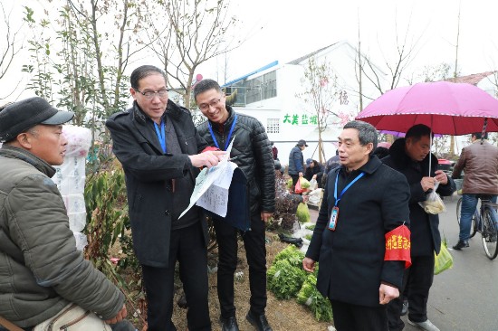 3月9日,市文明创建巡访团志愿服务劝导队队员肖兆玉、张健、丁德勤、潘振东、刘汝州等人,来到街头开展“劝导占道经营,共同维护城市形象暨志愿服务月”活动。
